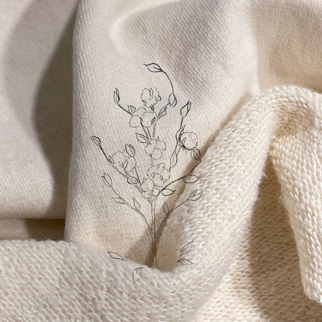 Our custom 100% cotton french terry is mid-weight at 340GSM with a matching rib that is 95% cotton and 5% Lycra. We picked a mid-weight terry so that we could adjust the overall heaviness of the garment through construction (double layering & use of rib), rather than through fabric type. This allows us to be more versatile, and to have one fabric that can used to make both summer and winter styles. French terry is also more breathable than fleece, which makes this fabric easier to wear during the hotter months.