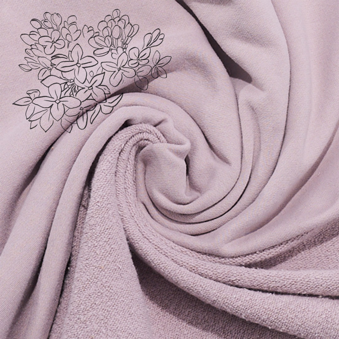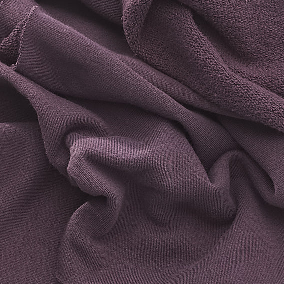 Our lighter colours are sueded on the outside for a buttery hand feel. All of our french terry is lightly brushed on the loop side for softness against your skin.