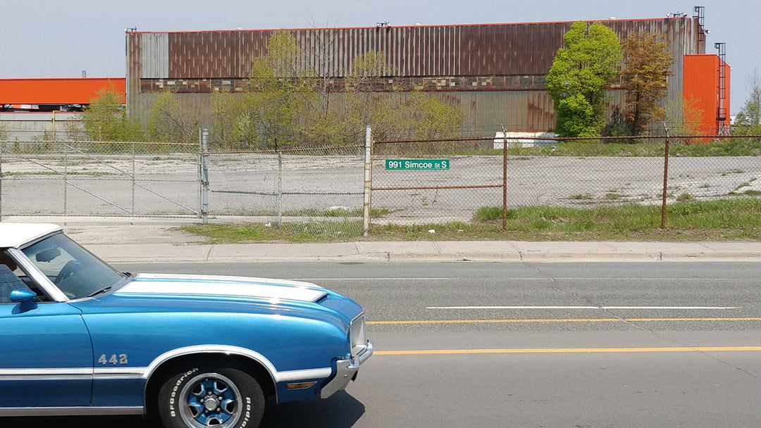 This is the first printed shirt we have ever released! The original photo for this artwork was taken by Duey in 2018 of a car parts factory in the south end of Oshawa. This factory has been in operation since 1947. In a stoke of luck, a beautiful vintage muscle car, the 1971 Oldsmobile 4-4-2, drove by and Duey caught it in the shot. The 4-4-2 was built at the GM Oshawa Car Assembly during the 1960s-70s, and the parts for that car likely came from the plant in the background.